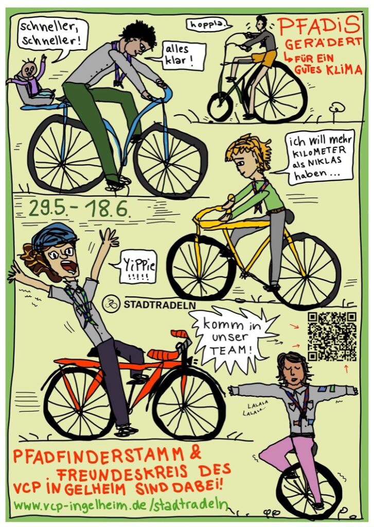 Hier geht’s zur Anmeldung zum Stadtradeln: stadtradeln.de/ingelheim – bei der Anmeldung dann das Team “Pfadfinder*innen VCP Ingelheim” auswählen.